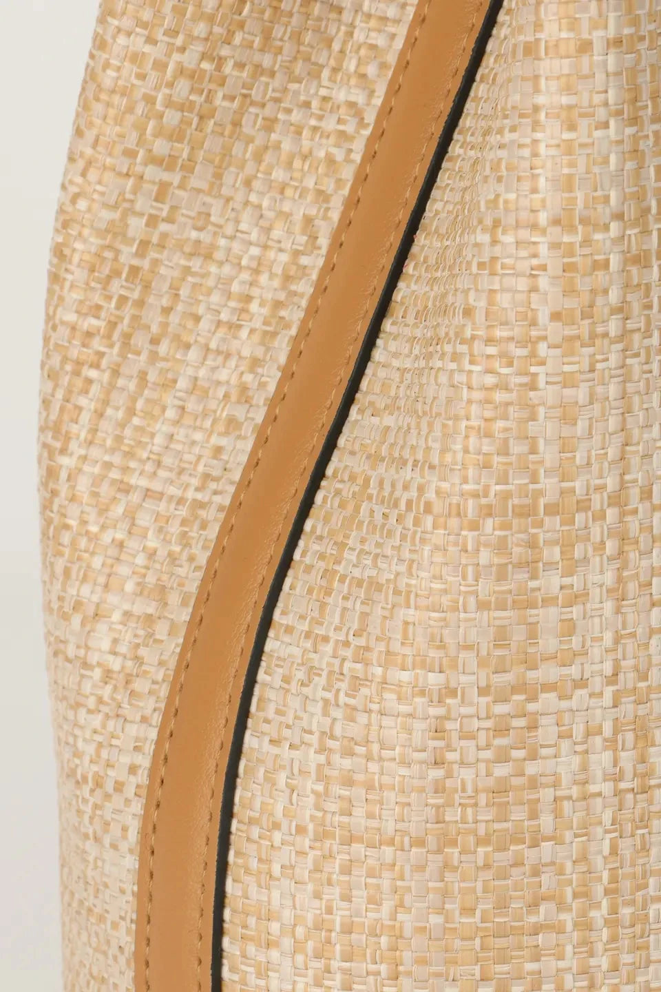 Ozzy Bag en rafia y cuero. Combina la naturalidad de los materiales orgánicos con detalles de lujo, logrando una pieza elegante y atemporal.