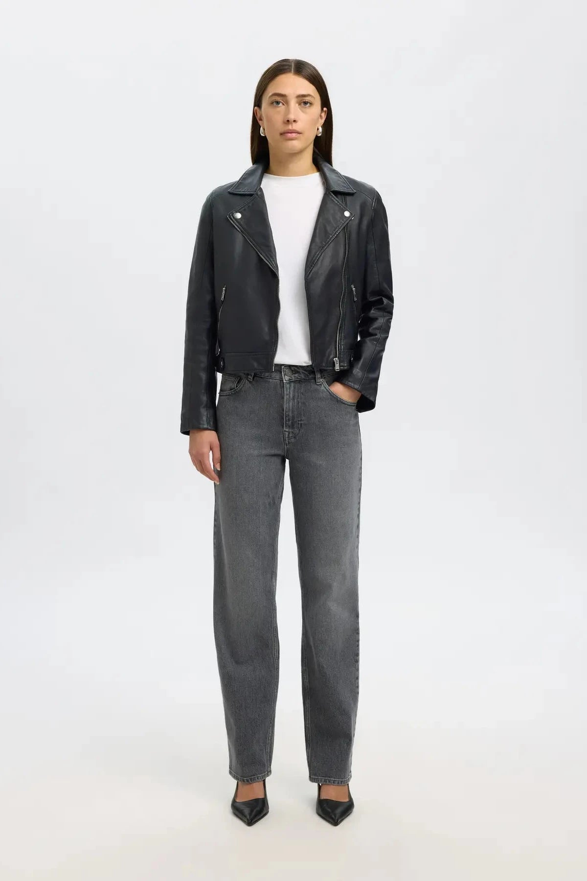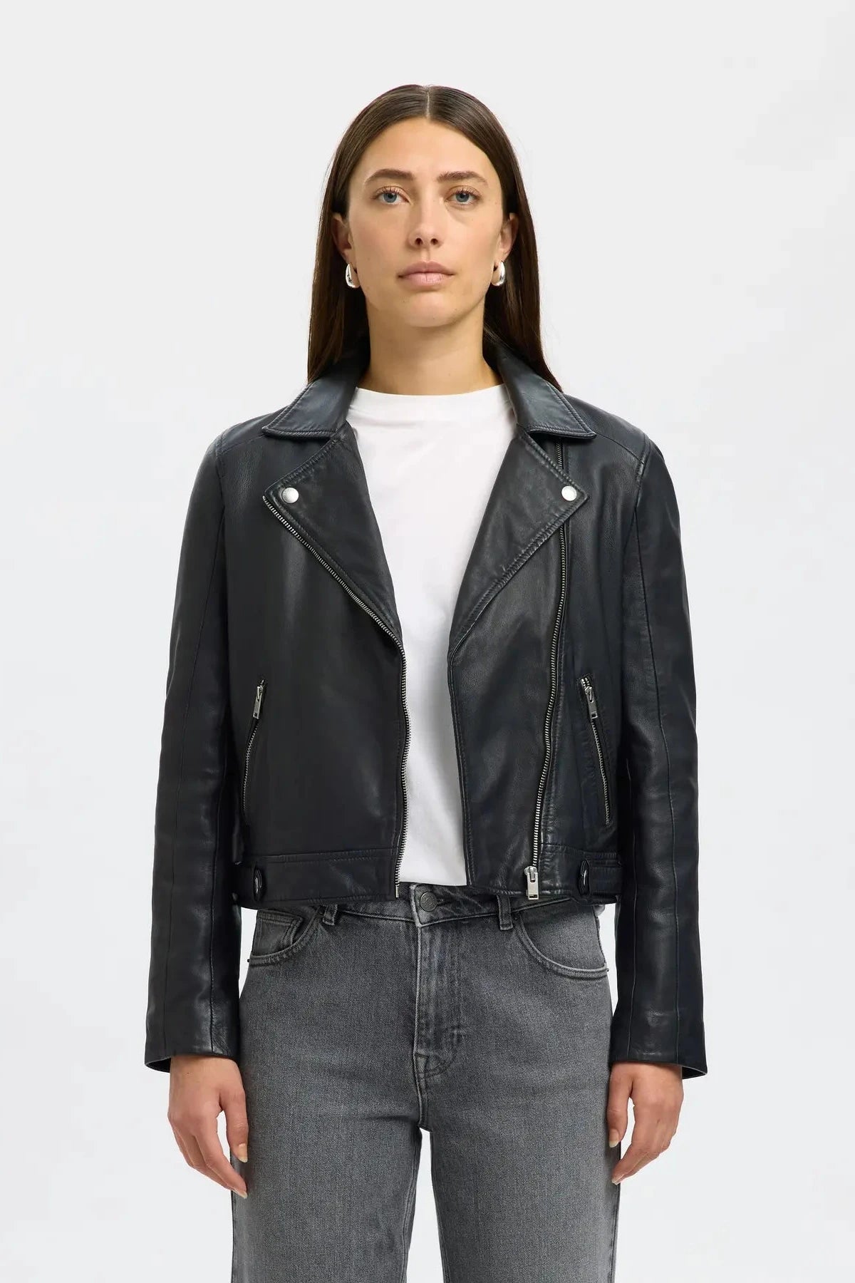 Chaqueta confeccionada 100% en piel, destaca por su diseño cropped y cremalleras que aportan funcionalidad y estilo. Su corte atemporal la convierte en una pieza clave para cualquier fondo de armario, ideal para aportar un toque rockero sofisticado a tus conjuntos. Durable y versátil, es una inversión que nunca pasa de moda.