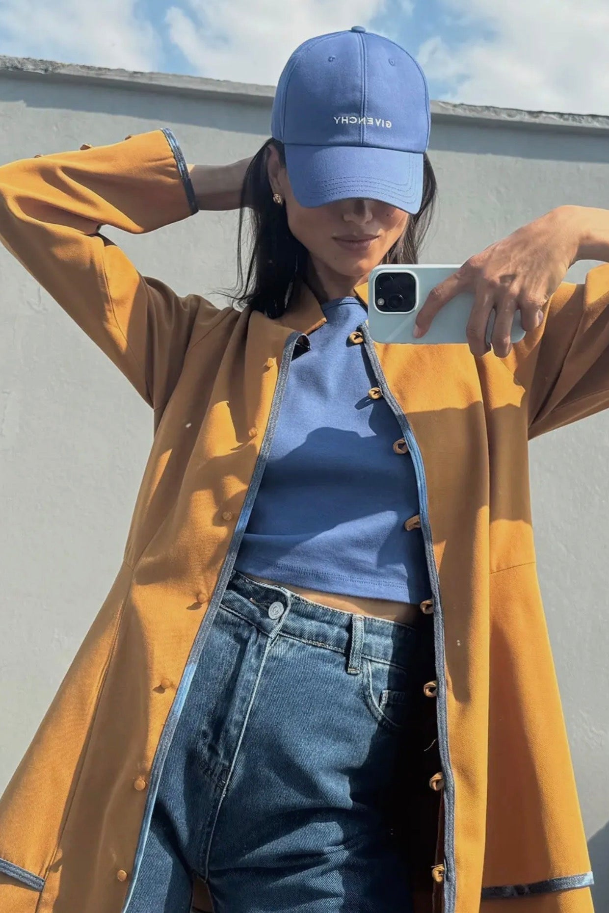 Chaqueta de gabardina bicolor con silueta acampanada y ribete en contraste. Cierre frontal de botones y puños entallados que aportan un acabado pulido. Ligera y versátil, perfecta para looks de transición con vaqueros, pantalones o vestidos.